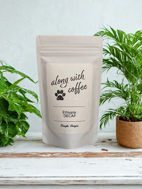 こちらはエチオピア産の有機栽培によるコーヒー豆です。モカ特有の華やかな香りを持ちながら、口当たりはとてもなめらかで、刺激の少ないやさしい味わいが特徴です。カフェインレスでありながら、香りや風味が薄くならないよう、ウォータープロセスによって丁寧にカフェインを除去しています。